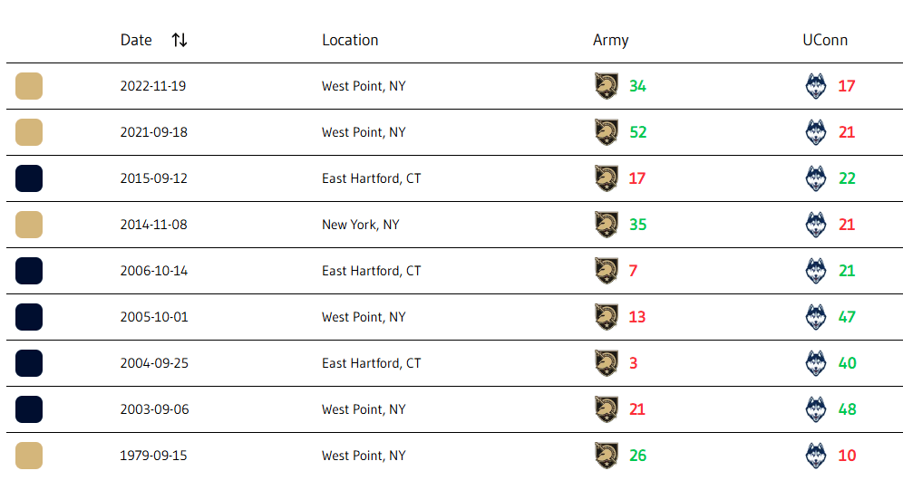 UConn is 5-4 all-time against Army, losing the first matchup in 1979 before winning the first four meetings as an FBS program. The Black Knights have won three of the last four in this series, including a win at West Point in Jim Mora’s first season.